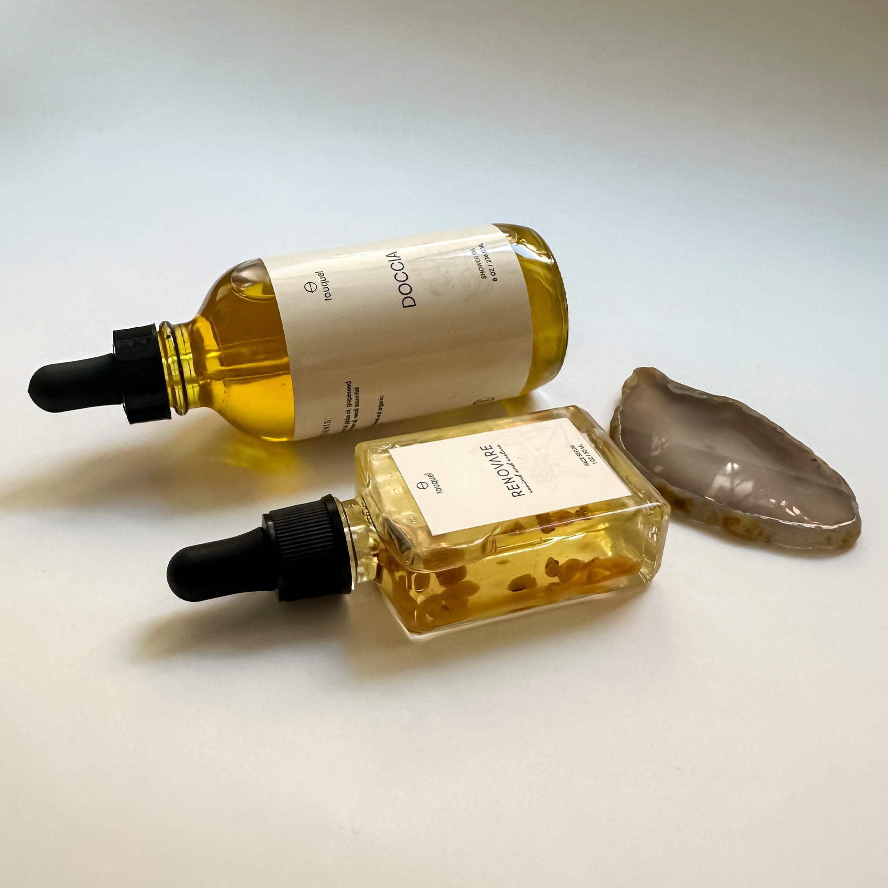 A deep skin rewinding treatment oil crafted for mature, hormonally shifting, or environmentally stressed skin. This blend is rich, regenerative, and sensually grounding.