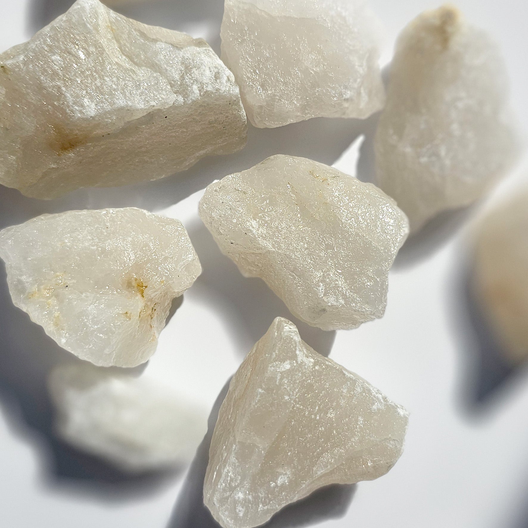 Milky Quartz: The soft, cloudy appearance of Milky Quartz comes from microscopic inclusions within the crystal. It radiates a gentle, nurturing energy that soothes the mind and body, making it an ideal stone for relaxation and emotional healing.