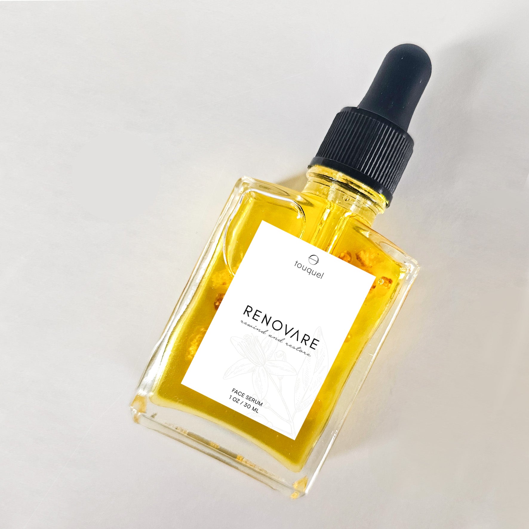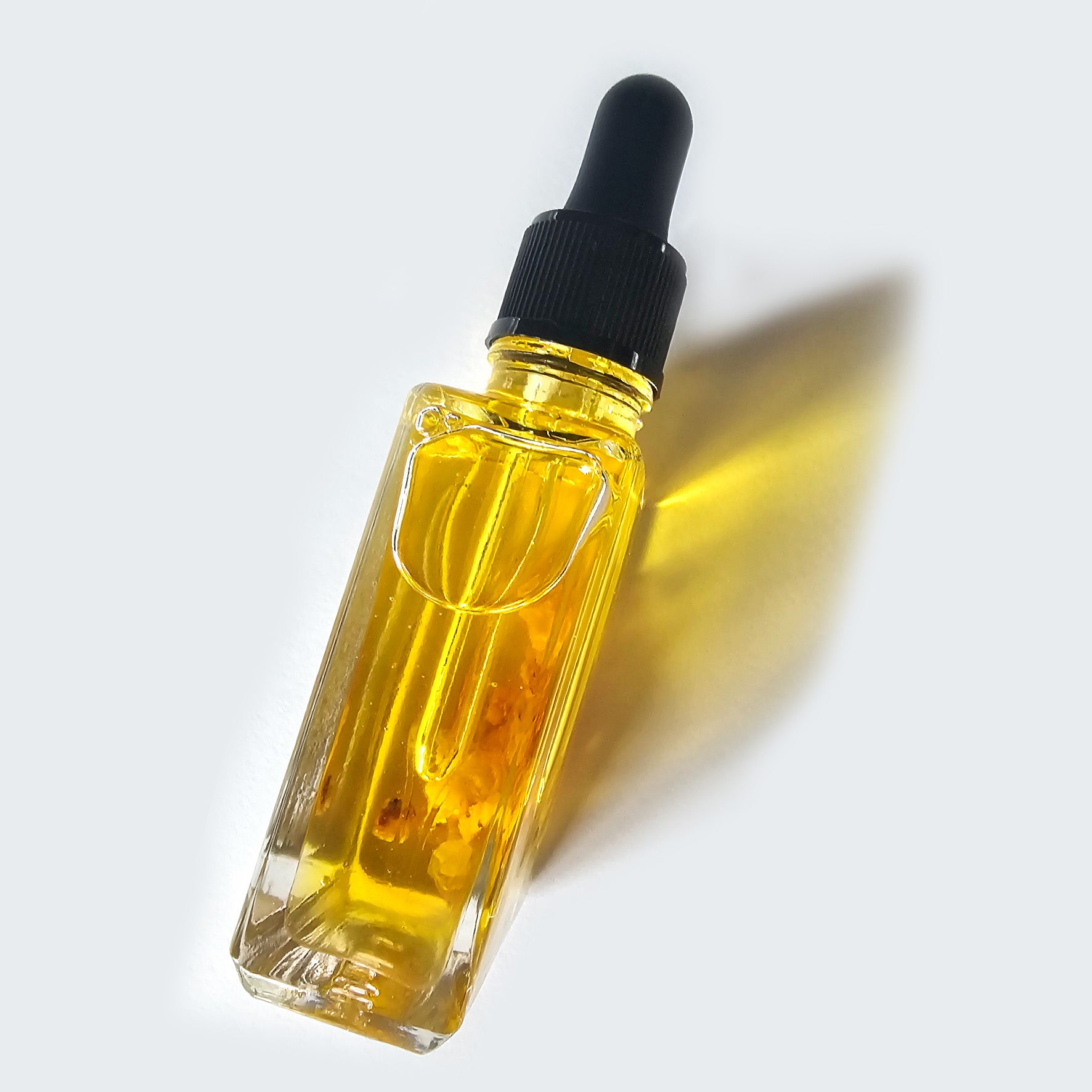 Infused with the nourishing Prunus domestica L. oil, extracted from plums, our elixir deeply hydrates and revitalizes the skin, restoring its natural radiance and elasticity. The addition of Simmondsia chinensis, or golden jojoba oil, mimics the skin's natural oils, balancing moisture levels and providing a protective barrier against environmental stressors.